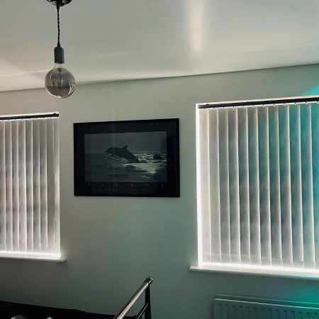 Vertical Blinds, shown here without the chains along the bottom, for a modern, more contemporary look.
